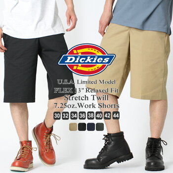 ディッキーズ ハーフパンツ ひざ下 ストレッチツイル リラックスフィット WR854 メンズ|ウエスト 30〜44インチ|大きいサイズ USAモデル Dickies|ワークパンツ 作業着 作業服 【W】